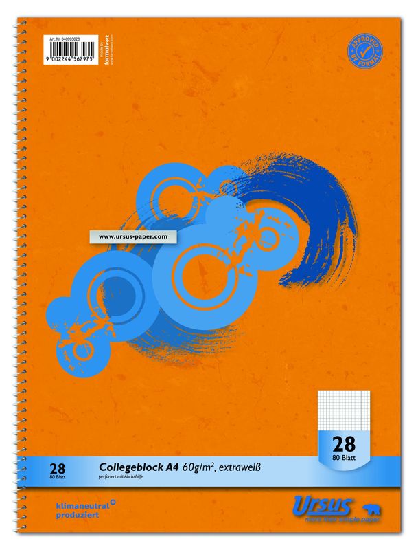 Mit weißer Spiralbindung. Papier 60 g/qm, ECF. Mit Mikroperforation und Ausreißhilfe. , Hersteller: Ursus, Herstellernummer: 040993028, EAN: 9002244567975, Preis je Stück