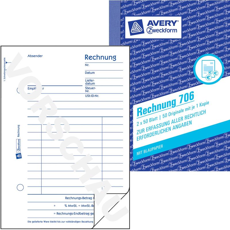 Buchhaltungs-, Kassenformular, Größe A6, Hersteller: Avery Zweckform®, Herstellernummer: 706, EAN: 4004182007068, Rechtssicher und stets nach aktuellem Gesetz gestaltet. Sicherheits-Bindung für starke Beanspruchung bis zum letzten Blatt. Mikroperforation für glatte Kanten und leichtes Heraustrennen. Farbige Durchschläge erleichtern die Organisation. Alle Formulare sind vorgelocht. MP = Mikroperforation. BL = Blaupapier. SD = selbstdurchschreibend., Preis je Stück