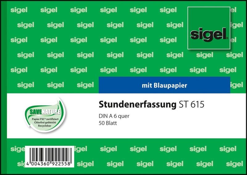 Personal-, Abrechnungsformular, Größe A6 quer, Hersteller: Sigel®, Herstellernummer: ST 615, EAN: 4004360922558, Formularbücher von Sigel garantieren durch ihre hohe Verarbeitungsqualität und Funktionalität einen maximalen Anwendernutzen. Die praktische Organisationshilfe für das Büro und im Alltag - damit es schneller und leichter geht. Mit lösungsmittelfreier Druckfarbe. MP = Microperforation. BL = Blaupapier. SD = selbstdurchschreibend., Preis je Stück
