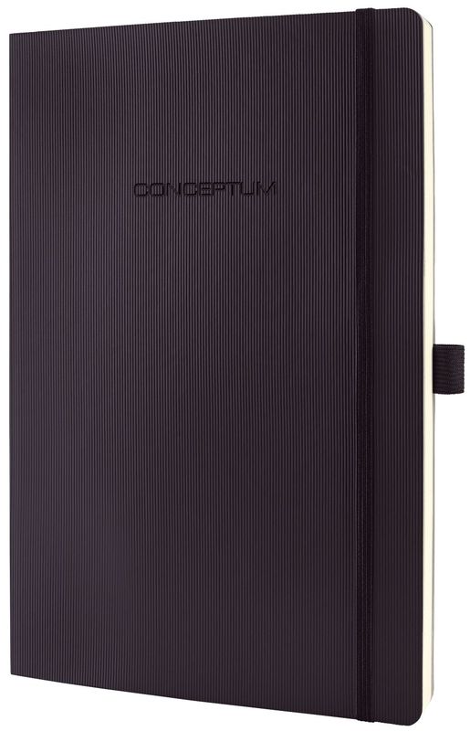 Flexibles Softcover mit gerillter Softwave-Oberfläche und Gummizug. In modernen Businessfarben mit allen praktischen CONCEPTUM® Funktionen. Black, kariert, nummierte Seiten, Inhaltsverzeichnis, Gummibandverschluss, Stifteschlaufe, 194 Seiten, Papier 80 Gramm, 187x270x14mm.