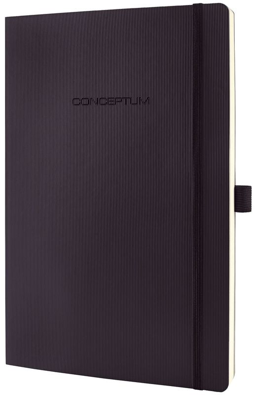 Flexibles Softcover mit gerillter Softwave-Oberfläche und Gummizug. In modernen Businessfarben mit allen praktischen CONCEPTUM® Funktionen. Black, liniert, nummierte Seiten, Inhaltsverzeichnis, Gummibandverschluss, Stifteschlaufe, 194 Seiten, Papier 80 Gramm, 187x270x14mm.