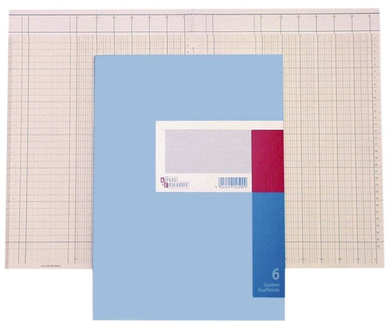 Spaltenbuch, Spaltenbogen, Spaltenanzahl 4 Spalten, Hersteller: König & Ebhardt, Herstellernummer: 86-11041, EAN: 4014149143906, Mit 32 Querlinien und Textspalte. Papier ECF, 80 g/qm. Kartoneinband: 2-farbig bedruckter, drucklackierter Kartonumschlag, einlagig drahtgeheftet. Deckenband: stabile Deckelpappe mit strapazierfähigem Elefantenhautüberzug und grauem Geweberücken. Farbe: blau. Größe: A4, inkl. Kopfleiste., Preis je Stück