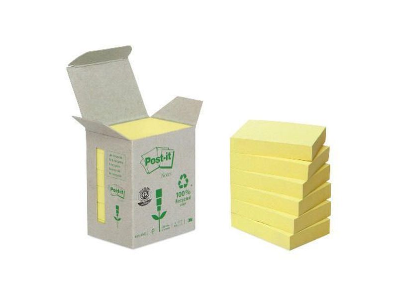 Haftnotizklotz, Größe (B x H) 38 x 51 mm, Farbe gelb, Hersteller: Post-it® RecyclingNotes, Herstellernummer: 6531B, EAN: 4046719216321, Recycling Notes aus 100 % recyceltem Papier. Haften auf Papier und allen glatten Oberflächen und sind rückstandsfrei wiederhablösbar. In einer praktischen Spenderbox. , Preis je Packung