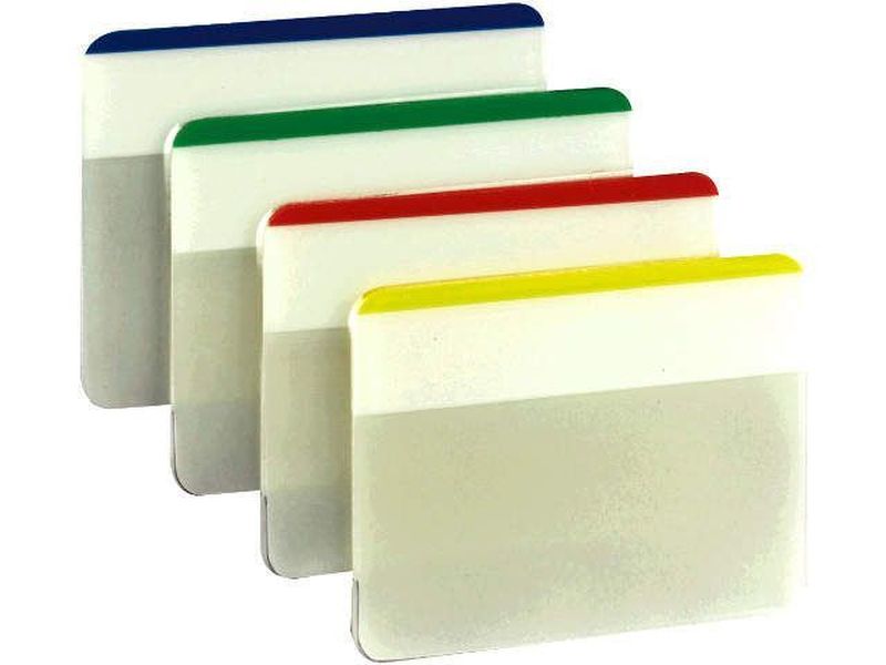 Haftmarker, Farben blau, gelb, grün, rot, Hersteller: Post-it® Index, Herstellernummer: 686-F1EU, EAN: 51131973442, Flache, besonders robuste, farbige Haftstreifen, die optimal als Register einsetzbar sind. Beschreibbar mit jedem gängigen Schreibgerät. Selbsthaftend und wieder verwendbar. Größe: 50,8 x 38 mm. Packung mit 4 x 6 Streifen., Preis je Packung