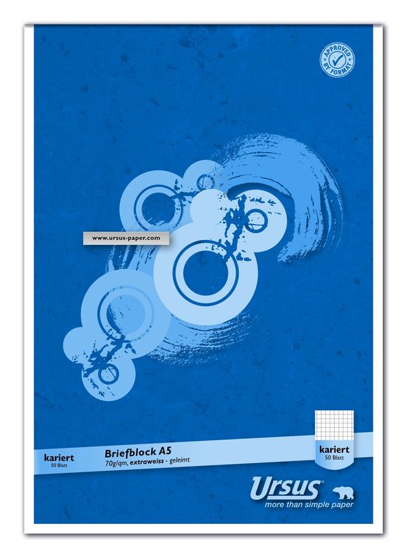 Notizblock, Ausführung kariert, Hersteller: Ursus more than simple paper, Herstellernummer: 608741020, EAN: 9001939819313, Briefblock mit Deckblatt. Geleimte Variante für optimalen Schutz Ihrer Notizen und perfekten Halt; durch Leimung am Kopf leichtes Entfernen der Blätter. Papier 70 g/qm, ECF. Block mit 50 Blatt., Preis je Stück