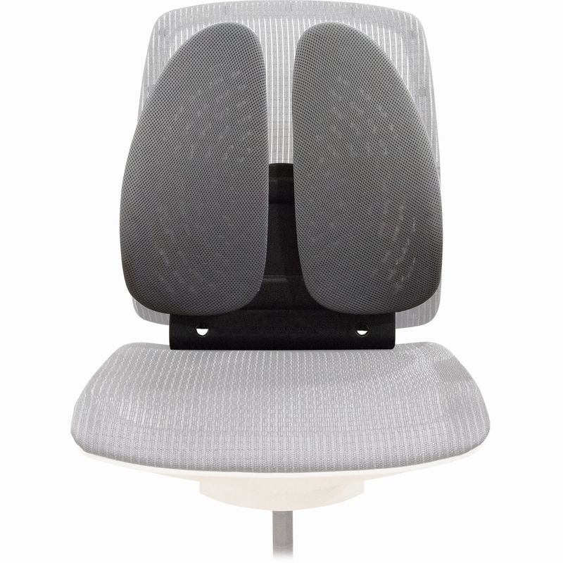 Back Angel™ Rückenstütze - Ideal für längeres Sitzen. Besteht aus 2 einzelnen Flügeln; jeder Flügel ist einzeln beweglich und passt sich an die Form des Rückens an. Höhenverstellbar für mehr Komfort. Leicht anzubringen: elastische und flexible Befestigung lässt sich einfach an gängige Bürostühle anbringen. Mit luftdurchlässigen Öffnungen.