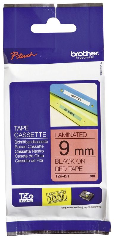 Kassette für Beschriftungsgerät Größe: 9 mm x 8 m (B x L), Schriftband rot auf schwarz, Hersteller: Brother®, Herstellernummer: TZ421, EAN: 4977766052269, Preis je Stück