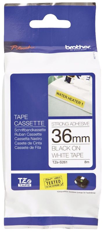 Kassette für Beschriftungsgerät Größe: 36 mm x 8 m (B x L), Schriftband schwarz auf weiß, Hersteller: Brother®, Herstellernummer: TZ261, EAN: 4977766054201, Preis je Stück