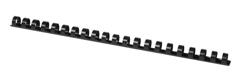 Binderücken für Stanz-, Bindemaschine Rückenbreite: 14 mm, für 105 Blatt, Packung mit 100 Stück, Farbe schwarz, Hersteller: Connect, Herstellernummer: KF24051, EAN: 5705831240513, Runder Plastik-Binderücken für A4. 21 Ringe., Preis je Packung
