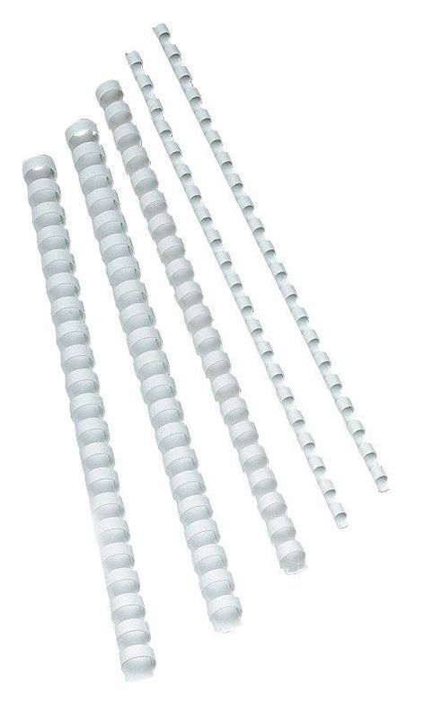 Binderücken für Stanz-, Bindemaschine Rückenbreite: 14 mm, für 105 Blatt, Packung mit 100 Stück, Farbe weiß, Hersteller: Connect, Herstellernummer: KF24052, EAN: 5705831240520, Runder Plastik-Binderücken für A4. 21 Ringe., Preis je Packung