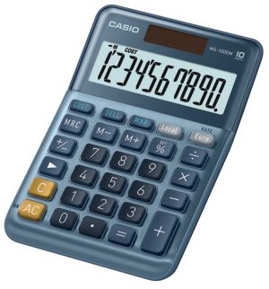 Tischrechner im Kompaktformat. Angewinkeltes Jumbo-Display (8 x 2,3 cm) mit Tausender-Unterteilung und Anzeige der Rechenart. Kombinierter Solar-/Batteriebetrieb mit automatischer Abschaltung. Währungsumrechnung (1 Kurs), Profi-Prozentrechnung, Mark Up mit Prozenttaste, Cost / Sell / Margin, Schnellkorrekturtaste, +/- Vorzeichenwechsel. 3-Tasten-Speicher. Konstantenspeicher. Der Eingabe-Pufferspeicher ermöglicht sehr schnelles Tippen (Key Rollover: Erkennen gleichzeitig gedrückter Tasten). Aluminiumfront, Kunststofftasten. Antirutsch-Gummifüße. Größe (B x H x T): 101 x 28 x 149 mm., Preis je ST, Hersteller: Casio®, Herstellernummer: MS-100EM, EAN: 4549526609923