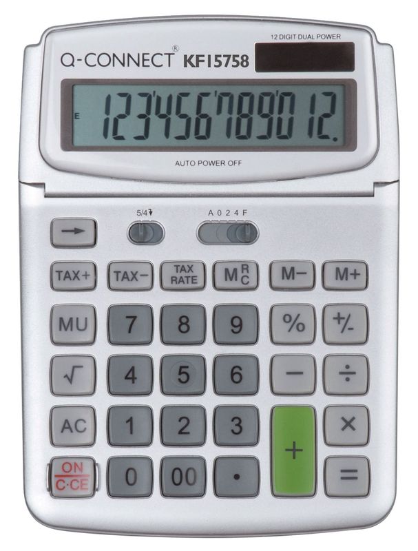 Tischrechner mit stufenlos verstellbarem LC-Display. Großes LC-Display. Speicher, Prozentrechnung, Mehrwertsteuer +/- Funktion,Quadratwurzelfunktion, 5/4- Rundung und Dezimalstellen. Solar- und Batteriebetrieb. Größe BxHxT: ca.140 x 25 x 195 mm.