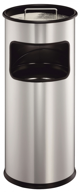Stahl-Papierkorb mit herausnehmbarem Zinkeinsatz und Alu-Aschenbecher mit Drahteinsatz. Inkl. 1,5 kg Sand für Aschenbechereinsatz. Schwarze Kunststoffränder. Größe: 260 x 620 mm (Ø x H)., Hersteller: Durable, Herstellernummer: 333023, EAN: 8710968203314, Preis je Stück