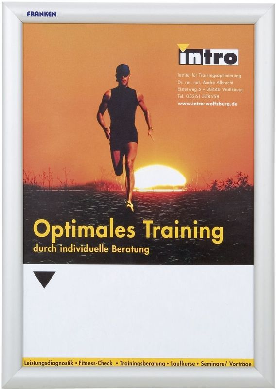 Wechselrahmen, Größe A3, Hersteller: Franken, Herstellernummer: BS1702, EAN: 4016946192439, Die eleganten Flachvitrinen gewährleisten dank dem silbereloxierten Aluminium-Klapprahmen einen geschützten Inhalt vor unbefugten Zugriff. Zum einfachen Öffnen und Wechseln der Aushänge, verwenden Sie den mitgelieferten Kunststoffhebel! Zur Wandmontage mit stabiler Rückwand und Antireflex-Schutzfolie. Wasserfest und damit Ideal für den Außenbereich durch ein integriertes Abdichtungsband. Profilstärke: 25 mm., Preis je Stück