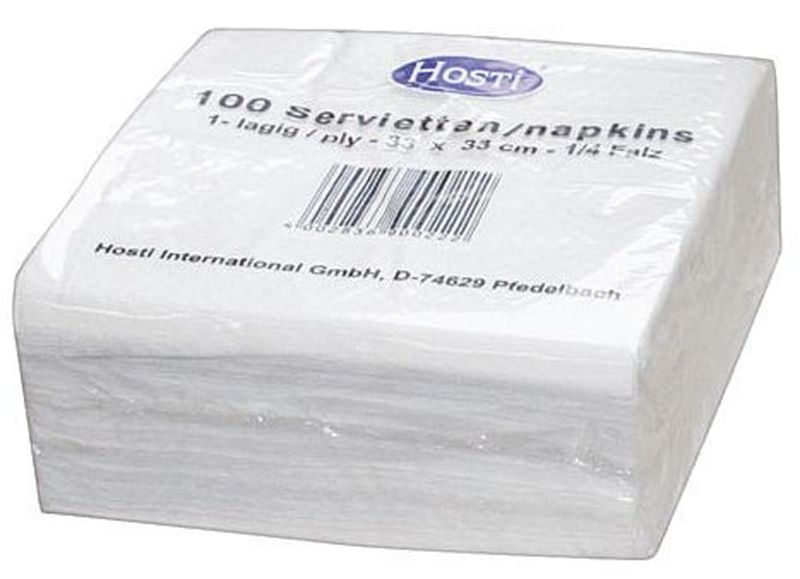 Papierserviette einfarbig, Farbe weiß, Hersteller: Neutral, Herstellernummer: 973/100, EAN: 4002917396050, 1-lagig, mit 1/4-Falzung. Größe: 33 x 33 cm. Packung mit 100 Stück., Preis je Packung
