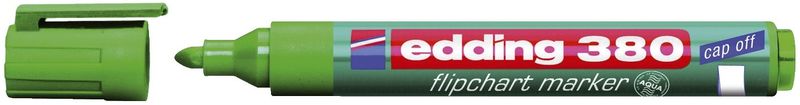Flipchartmarker 380 / 383 Marker 380, Rundspitze, ca. 1,5 - 3 mm Schreibfarbe grün, Hersteller: Edding, Herstellernummer: 4-380004, EAN: 4004764013180, Nachfüllbarer Marker für Flipchart- und andere Papiere. Die Cap-off-Tusche verhindert ein Austrocknen, selbst wenn der Marker bis zu 6 Wochen ohne Kappe liegen bleibt. Geruchsneutrale, nicht durchschlagende Tinte auf Wasserbasis. Auswechselbare Schreibspitze. Kappe und Spitze in Schreibfarbe. Einfach und sauber nachfüllbar mit edding FTK25 Nachfülltusche., Preis je Stück