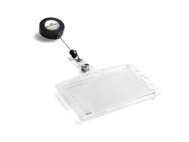 Namensschild Größe (B x H) 85 x 54 mm, Packung mit 10 Stück, Hersteller: Durable, Herstellernummer: 8224-19, EAN: 4005546802770, Die Hartbox mit Ausweishalter schützt 2 Betriebsausweise gleichzeitig und schafft gleichzeitig durch die Daumenstanzung einen schnellen Zugriff. Kann im Hoch- oder Querformat genutzt werden. Der Ausweishalter mit Aufrollmechanismus hat eine Länge von bis zu 80 cm., Preis je Packung