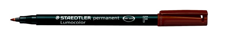 Universalstift Lumocolor®, permanent Strichstärke ca. 0,6 mm (F) Schreibfarbe braun, Hersteller: Staedtler®, Herstellernummer: 318-7, EAN: 4007817332436, Der Universalstift, der nicht austrocknet! Nachfüllbarer Universalstift für Overhead-Projektion und fast alle Flächen. DRY SAFE: kann tagelang offen liegen, ohne einzutrocknen. Airplane-safe ? automatischer Druckausgleich verhindert das Auslaufen des Stiftes im Flugzeug. Hervorragend wisch- und wasserfest auf fast allen Flächen. Sekundenschnell trocken, daher ideal für Linkshänder. Geruchsarme, Xylol - toluolfreie Tinte mit höchster Farbbrillanz. Kappe und Abschluss in Schreibfarbe. Schaftfarbe: schwarz. Farben 4er STAEDTLER Box: blau, grün, rot, schwarz. Farben 6er STAEDTLER Box: blau, braun, grün, orange, rot, schwarz. Farben 8er STAEDTLER Box: blau, braun, gelb, grün, orange, rot, schwarz, violett., Preis je Stück