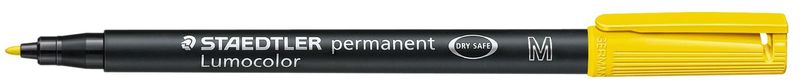 Universalstift Lumocolor®, permanent Strichstärke ca. 1 mm (M) Schreibfarbe gelb, Hersteller: Staedtler®, Herstellernummer: 317-1, EAN: 4007817310533, Der Universalstift, der nicht austrocknet! Nachfüllbarer Universalstift für Overhead-Projektion und fast alle Flächen. DRY SAFE: kann tagelang offen liegen, ohne einzutrocknen. Airplane-safe ? automatischer Druckausgleich verhindert das Auslaufen des Stiftes im Flugzeug. Hervorragend wisch- und wasserfest auf fast allen Flächen. Sekundenschnell trocken, daher ideal für Linkshänder. Geruchsarme, Xylol - toluolfreie Tinte mit höchster Farbbrillanz. Kappe und Abschluss in Schreibfarbe. Schaftfarbe: schwarz. Farben 4er STAEDTLER Box: blau, grün, rot, schwarz. Farben 6er STAEDTLER Box: blau, braun, grün, orange, rot, schwarz. Farben 8er STAEDTLER Box: blau, braun, gelb, grün, orange, rot, schwarz, violett., Preis je Stück