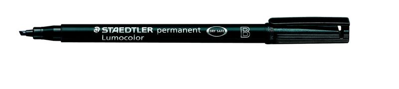Universalstift Lumocolor®, permanent Strichstärke ca. 1,0 oder 2,5 mm (B) Schreibfarbe schwarz, Hersteller: Staedtler®, Herstellernummer: 314-9, EAN: 4007817304518, Der Universalstift, der nicht austrocknet! Nachfüllbarer Universalstift für Overhead-Projektion und fast alle Flächen. DRY SAFE: kann tagelang offen liegen, ohne einzutrocknen. Airplane-safe ? automatischer Druckausgleich verhindert das Auslaufen des Stiftes im Flugzeug. Hervorragend wisch- und wasserfest auf fast allen Flächen. Sekundenschnell trocken, daher ideal für Linkshänder. Geruchsarme, Xylol - toluolfreie Tinte mit höchster Farbbrillanz. Kappe und Abschluss in Schreibfarbe. Schaftfarbe: schwarz. Farben 4er STAEDTLER Box: blau, grün, rot, schwarz. Farben 6er STAEDTLER Box: blau, braun, grün, orange, rot, schwarz. Farben 8er STAEDTLER Box: blau, braun, gelb, grün, orange, rot, schwarz, violett., Preis je Stück
