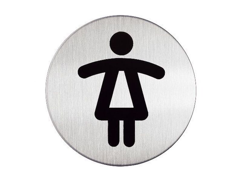 PICTO Größe Ø 83 mm Aufdruck WC Damen, Hersteller: Durable, Herstellernummer: 4904-23, EAN: 4005546400136, Piktogramm aus hochwertigem gebürstetem Edelstahl. Mit Klebepad für verschiedenste Oberflächen. Der schwarze Druck ist kratzfest und unempfindlich. Farbe: metallic silber., Preis je Stück