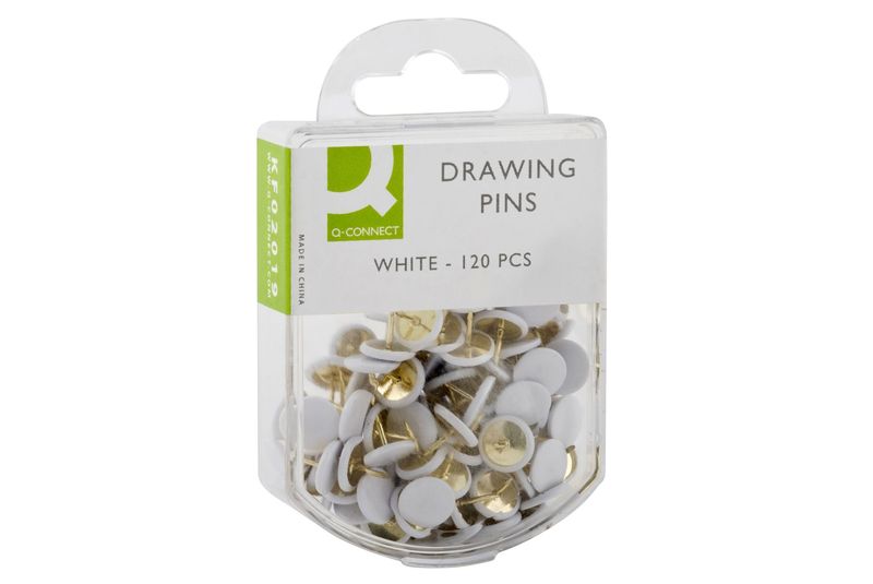 Reißnägel Dose mit 120 Stück Ausführung kunststoffüberzogen, weiß, Hersteller: Connect, Herstellernummer: KF02019, EAN: 5705831020191, Reißnägel in unterschiedlichen Ausführungen. Durchmesser: 10 mm. Dose mit 200 bzw. 120 Stück., Preis je Packung
