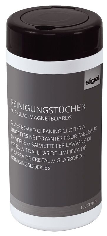 Feuchte Reinigungstücher für Glas-Magnetboards artverum®. Entfernen schnell und schlierenfrei Schriftrückstände, Schmutz und Staub von Glas und fast allen geschlossenen Oberflächen. Optimal zum Entfernen von Glasboard-Markern und allen handelsüblichen Whiteboard-Markern. Auch für die Entfernung von Kreidemarkern geeignet. Hinweis: Kreidemarker erst trocken abwischen, anschließend ist die Grundreinigung mit Reinigungstüchern möglich. Die wiederverschließbare Spenderbox enthält 100 fusselfreie, getränkte Tücher mit Perforation zum einfachen Entnehmen.