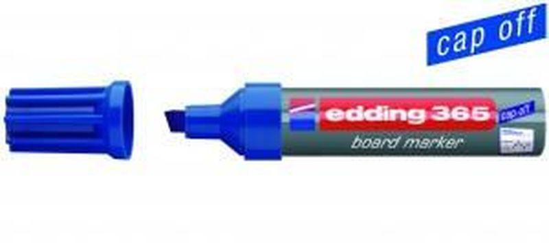 Whiteboard-Marker 363 / 365 Marker 365, Keilspitze, ca. 2 - 7 mm Schreibfarbe blau, Hersteller: Edding, Herstellernummer: 4-365003, EAN: 4004764105380, Nachfüllbarer Marker für Whiteboards und fast alle geschlossenen Oberflächen. Die Cap-off-Tusche verhindert ein Austrocknen, selbst wenn der Marker einige Tage ohne Kappe liegen bleibt. Geruchsarme Pigmenttusche, trocken abwischbar, ohne Zusatz von Butylacetat. Einfach und sauber nachfüllbar mit edding BTK25 Nachfülltusche. Auswechselbare Spitze., Preis je Stück