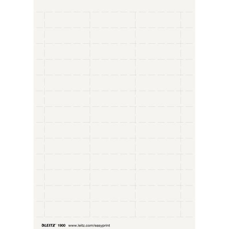 Blanko-Schildchen 1900, Breite 60 mm, Hersteller: Leitz, Herstellernummer: 1900-00-01, EAN: 4002432335244, Für Vollsichtreiter 6114, 6115, 6116, 6124. Auf A4-Papier, 120 g/qm, 4-zeilig beschriftbar, mit Perforation zum Heraustrennen. Für Laser-, Inkjetdrucker und Kopierer. Farbe: weiß. Packung mit 25 Blatt (= 975 Stück)., Preis je Packung