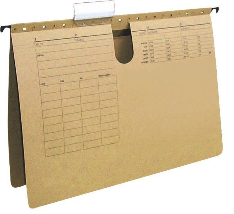 Hängeregistratur, Ausführung Hängehefter, mit kfm. Heftung, Farbe naturbraun, Hersteller: Connect, Herstellernummer: KF00554, EAN: 5705831005549, Hängeschienen mit Vollsichtreiter und auswechselbaren Blanco-Schildchen. Aus 230g/qm Natronkarton. Für A4. Farbe naturbraun., Preis je Stück