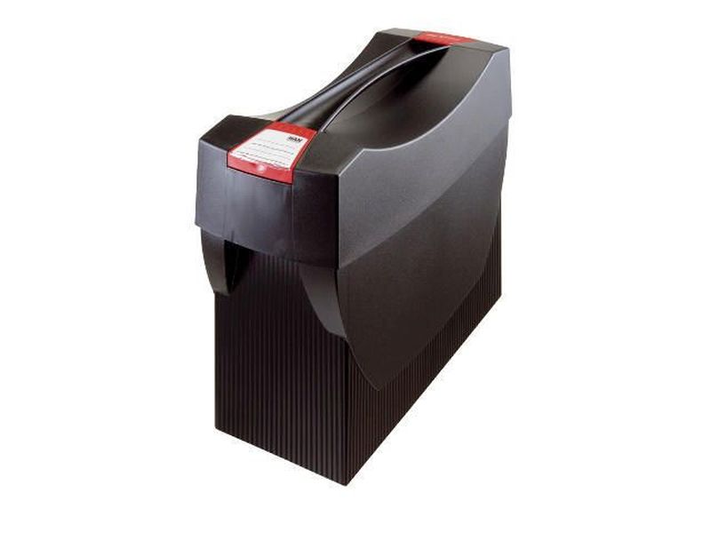 Hängemappenboxen SWING und SWING +, Farbe schwarz, Hersteller: HAN, Herstellernummer: 1901-13, EAN: 4012473190122, Box für 20 Hängemappen A4 oder 3 Ordnern 50 mm breit geeignet. Im Seitenteil Köcher für Stifte. Stapelbar. Aus Polystyrol (PS). Inclusive Beschriftungsschild im Verriegelungsclip. Lieferung ohne Mappen., Preis je Stück