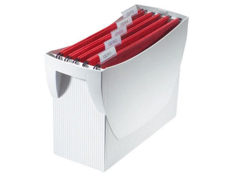 Hängemappenboxen SWING und SWING +, Farbe lichtgrau, Hersteller: HAN, Herstellernummer: 1900-11, EAN: 4012473190016, Box für 20 Hängemappen A4 oder 3 Ordnern 50 mm breit geeignet. Im Seitenteil Köcher für Stifte. Stapelbar. Aus Polystyrol (PS). Inclusive Beschriftungsschild im Verriegelungsclip. Lieferung ohne Mappen., Preis je Stück