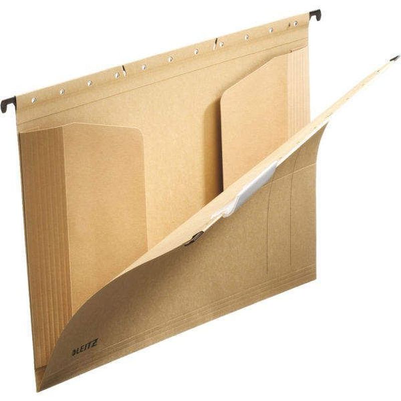ALPHA® Hängetasche mit Jurisklappen, Farbe naturbraun, Hersteller: Leitz, Herstellernummer: 1917-00-00, EAN: 4002432406807, Für Loseblatt-Ablage von Einzelakten. Seitlich zwei Jurisklappen, Schlitzstanzung für Einsteck-Heftstreifen. Stabile, kunststoffumsinterte Hängeschienen, Vollsichtreiter und auswechselbare Blanko-Schildchen. Aus 250 g/qm Natronkarton (RC), besonders stabi, Preis je Stück