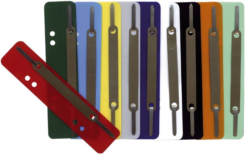 Heftstreifen Kunststoff, kurz, Farbe sortiert, Hersteller: Connect, Herstellernummer: 1102502011, EAN: 4018924111203, Aus Polypropylen (PP). Ohne Heftfalz. Deckleiste aus Metall. Größe: 34 x 150 mm (kurz)., Preis je Packung