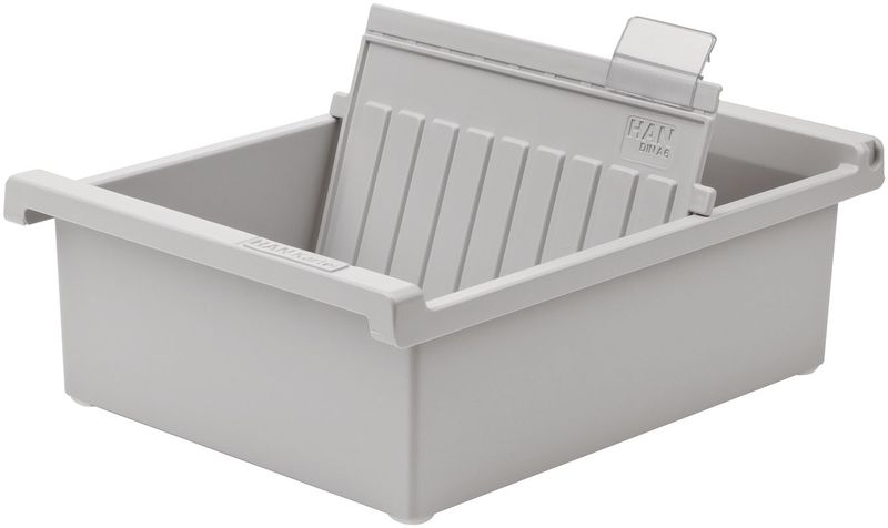 Karteitröge für ca. 800 Karteikarten, inkl. 1 Stützplatte + Sichtreiter, für Karten A6 quer, Größe (B x T x H) 171x235x76 mm, Hersteller: HAN, Herstellernummer: 966-0-11, EAN: 4012473966017, Der Trog ist in die Schreibtischschublade einstellbar. Möbelschonende Gummifüßchen. Aus hochwertigem, schwermetallfreien Kunststoff. Farbe: lichtgrau., Preis je Stück