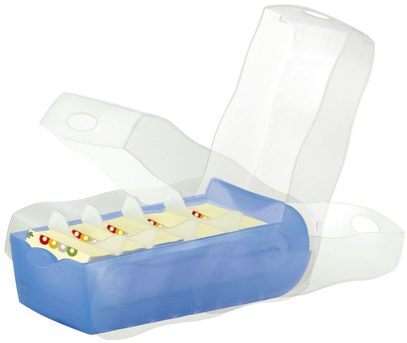 Lernkartei CROCO für A7 quer, Größe: 121 x 246 x 85 mm, für ca. 900 Karten, Farbe blau-transluzent, Hersteller: HAN, Herstellernummer: 997643, EAN: 4012473997035, Kleinkartei für bis zu 900 Karten. Inkl. 100 gelben Karteikarten und 5 Stützplatten. Incl. Beschriftungsschild. Automatische Verriegelung. Beim Öffnen verschwindet der transparente Deckel unter dem Kasten. Aus transluzentem Polypropylen (PP)., Preis je Stück