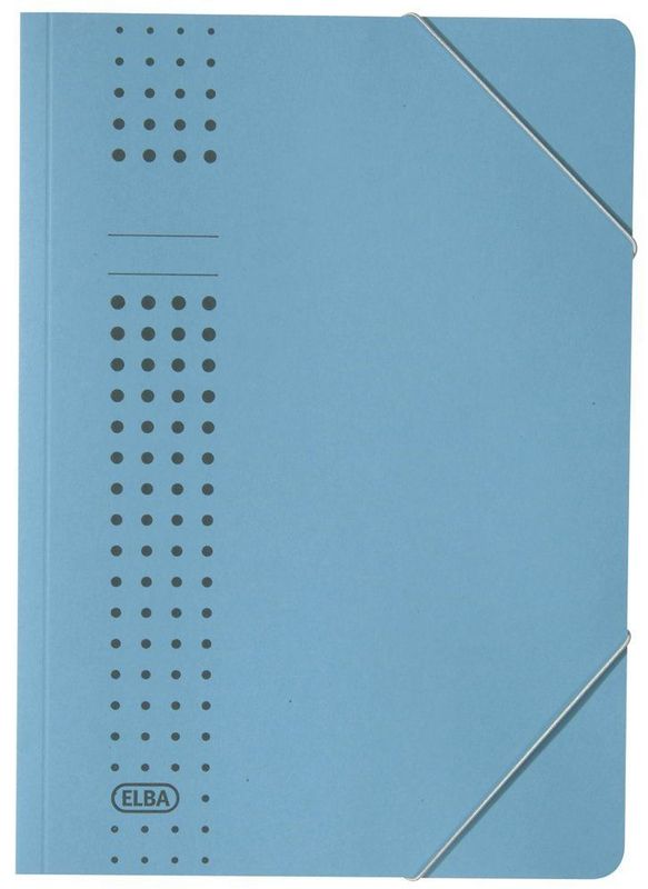 Eckspanner chic, Farbe blau, Hersteller: Elba, Herstellernummer: 33 470 BL, EAN: 4002030331082, Mappe für lose Unterlagen in attraktivem, modischem Design. Mit Eckspannergummi. Aus festem 450 g/qm Karton (RC). Für ca. 150 DIN A4-Blätter. Größe: 230 x 320 x 3 mm., Preis je Stück