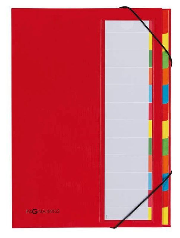 Deskorganizer, mit Eckspanngummi, dehnbarem Rücken, farbigem Griffregister, mit Polyesterfolie verstärkt, eingelegte farbige Kartoneinlage zur Beschriftung + blanko Ersatzeinlage zur individuellen Bedruckung über den PC., Hersteller: Pagna®, Herstellernummer: 44133-01, EAN: 4013951003279, Preis je Stück