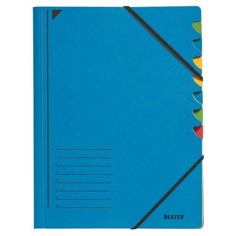 mit 7 Fächern, Farbe blau, Hersteller: Leitz, Herstellernummer: 3907-00-35, EAN: 4002432329069, Fächer mit 5-farbigen Greifausschnitten. Gummiband über Vorderdeckelecken. Aus 400 g/qm Colorspankarton (RC). Für A4. Größe: 245 x 320 mm., Preis je Stück