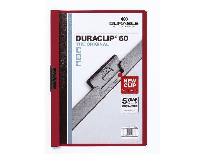 Klemm-Mappen DURACLIP® Original für bis zu 60 Blatt A4, Größe: 220x307 mm, Farbe aubergine, Hersteller: Durable, Herstellernummer: 2209-31, EAN: 4005546210711, Klemm-Mappe mit stabiler, flacher, schwarzer Metallklemme aus Spezialstahl. Transparenter Vorderdeckel und farbiger Rückdeckel aus Hartfolie. 5 Jahre Garantie des Hersteller auf den Clip., Preis je Stück