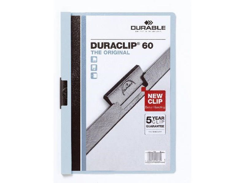 Klemm-Mappen DURACLIP® Original für bis zu 60 Blatt A4, Größe: 220x307 mm, Farbe blau, Hersteller: Durable, Herstellernummer: 2209-06, EAN: 4005546210629, Klemm-Mappe mit stabiler, flacher, schwarzer Metallklemme aus Spezialstahl. Transparenter Vorderdeckel und farbiger Rückdeckel aus Hartfolie. 5 Jahre Garantie des Hersteller auf den Clip., Preis je Stück