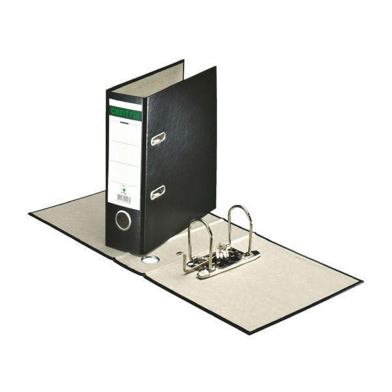 Ordner Sonderformate mit Griffloch, Größe A5, Hersteller: Centra, Herstellernummer: 220206, EAN: 3034152202064, Aus Hartpappe (RC). Außen mit PP-Folie kaschiert. Aufgeklebtes Rückenschild. Mit Hebelmechanik und Schlitzen. Ohne Kantenschutz. Farbe: schwarz. Rückenbreite 70 mm., Preis je Stück