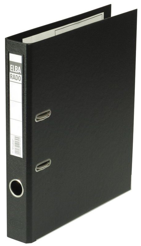 Ordner rado plast Rückenbreite 50 mm, Farbe schwarz, Hersteller: Elba, Herstellernummer: 10 494 SW, EAN: 4002030101395, Hochwertige Präzisionsmechanik. Extrem stabiler Pappkern. Vollfarbiger Einband aus extrem strapazierfähiger Kunststoff-Folie. Schmutz- und feuchtigkeitsabweisend. Mit auswechselbarem Rückenschild, Griffloch und Kantenschutz, sowie 2 rado-Ösen für ein plat, Preis je Stück