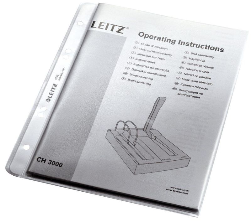 Extrastarke Prospekthüllen , oben offen, für Größe A4, Hersteller: Leitz, Herstellernummer: 4700-00-03, EAN: 4002432350261, Aus PP-Folie, genarbt, 0,13 mm, dokumentenecht. Standardlochung., Preis je Stück