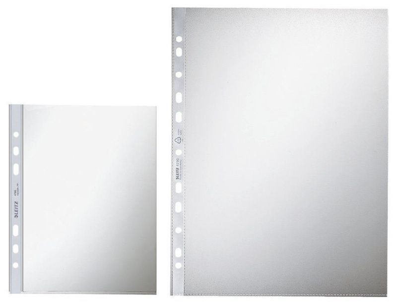 Standard Prospekthüllen, oben offen für Größe A4, Standardqualität, Ausführung genarbt, 0,10 mm, Hersteller: Leitz, Herstellernummer: 4704-00-00, EAN: 4002432310029, Aus PP-Folie, dokumentenecht. Universallochung. Packung mit 100 Stück., Preis je Packung