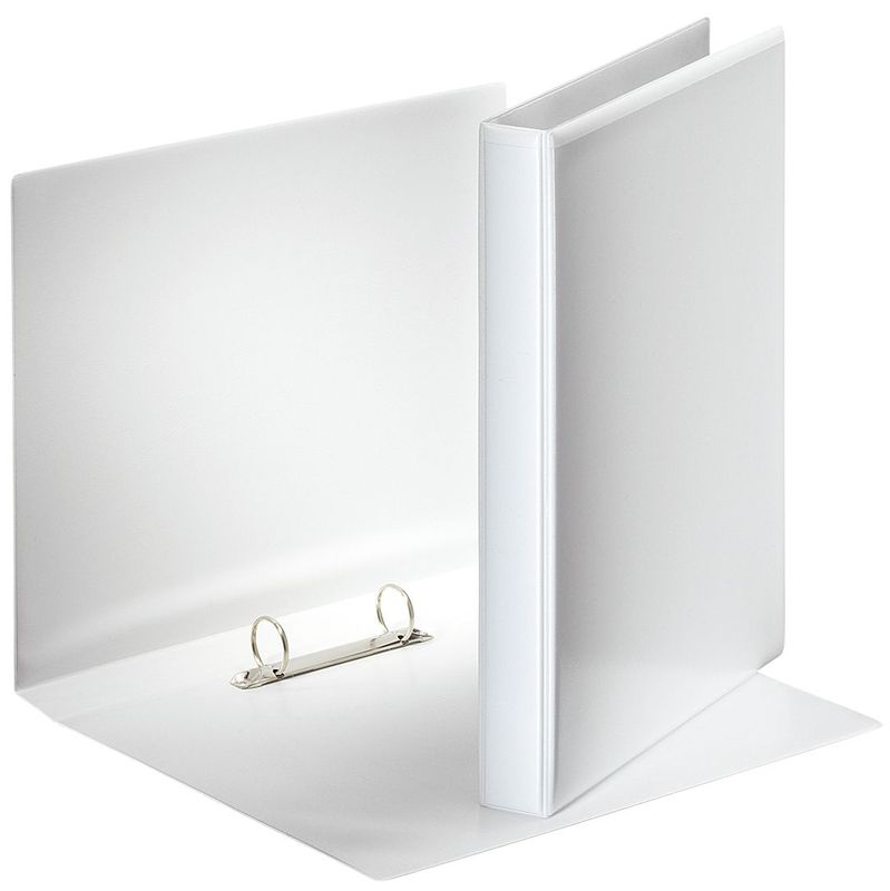 Präsentationsringbücher 2-Ring-Rundmechanik 25 mm, Fassungsvermögen 190 Blatt, Rückenbreite 38 mm, Farbe weiß, Hersteller: Esselte®, Herstellernummer: 49708, EAN: 5701216497084, Für Format A4, mit 2 transparenten Außentaschen auf Vorderdeckel und Rücken für die individuelle Gestaltung. Material: Robuste und stabile Graupappe, mit genarbten PP-Folie beklebt. Ohne Niederhalter. Ideale Papierstärke für Einleger: 165 g/qm, Einleger , Prei je Stück
