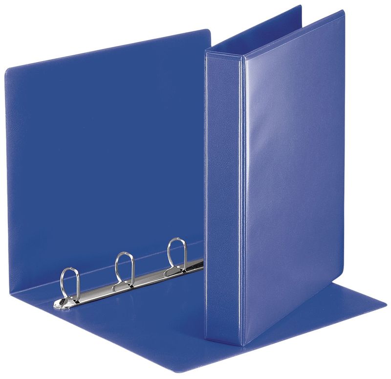 Präsentationsringbücher 4-D-Ring-Combimechanik 30 mm, Fassungsvermögen 300 Blatt, Rückenbreite 50 mm, Farbe blau, Hersteller: Esselte®, Herstellernummer: 49715, EAN: 5701216497152, Für Format A4, mit 2 transparenten Außentaschen auf Vorderdeckel und Rücken für die individuelle Gestaltung. Material: Robuste und stabile Graupappe, mit genarbten PP-Folie beklebt. Ohne Niederhalter. Ideale Papierstärke für Einleger: 165 g/qm, Einleger , Prei je Stück