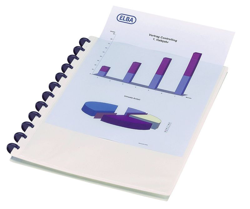 Ringmappe image overhead vario-zipp, Ausführung Ringmappe, Farbe weiß, Hersteller: Elba, Herstellernummer: 61 430 WE, EAN: 4002030012059, Ringmappe mit 20 glasklaren PP-Hüllen, oben offen. Austausch- und erweiterbar bis ca. 40 Hüllen. Schnelle Änderung der Reihenfolge durch vario-zipp-Prinzip. Vorderflügel mit glasklarer Tasche zur individuellen Frontseitengestaltung. Ring-Ø 19 mm, Ringfarb, Prei je Stück