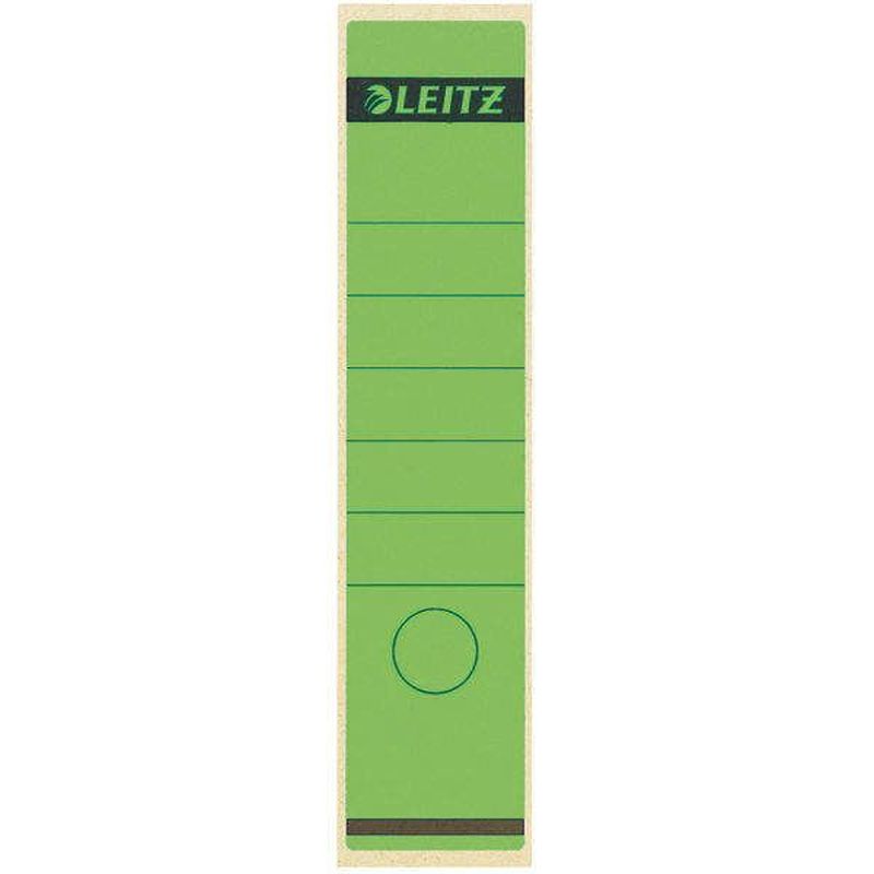 Rückenschilder breit, lang mit Loch 61 x 285 mm, Beutel mit 10 Stück, Farbe grün, Hersteller: Leitz, Herstellernummer: 1640-00-55, EAN: 4002432302284, Selbstklebendes Ordner-Rückenschild aus chlorfrei gebleichtem Papier, lösungsmittelfrei., Preis je Packung