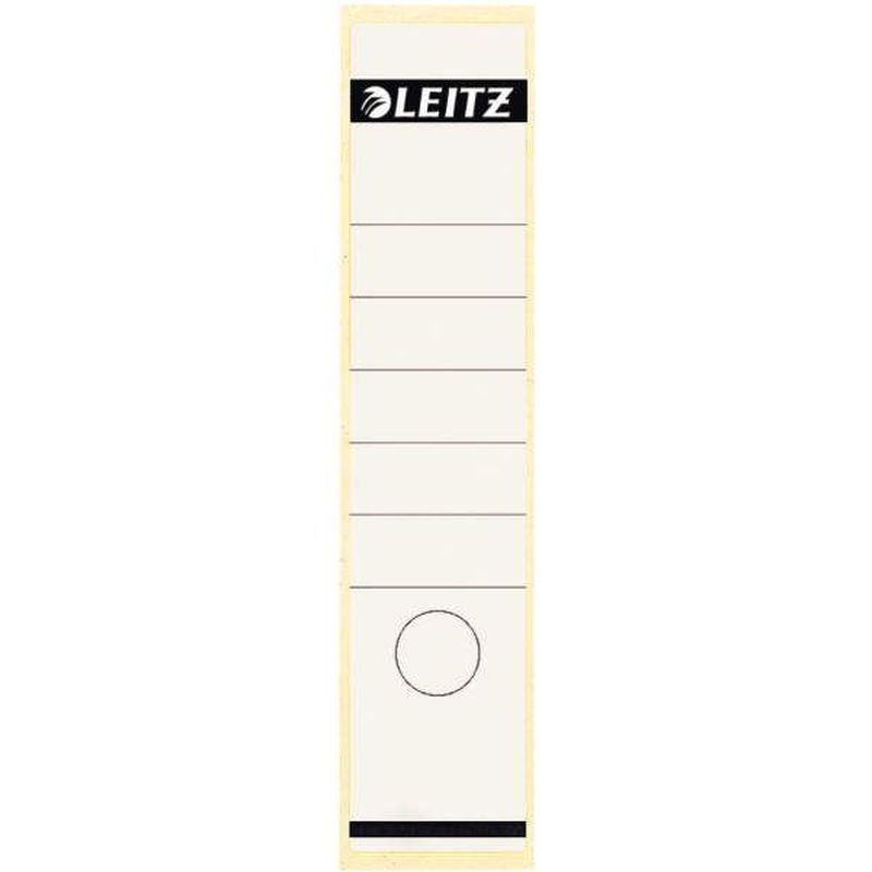 Rückenschilder breit, lang mit Loch 61 x 285 mm, Beutel mit 10 Stück, Farbe weiß, Hersteller: Leitz, Herstellernummer: 1640-00-01, EAN: 4002432302246, Selbstklebendes Ordner-Rückenschild aus chlorfrei gebleichtem Papier, lösungsmittelfrei., Preis je Packung